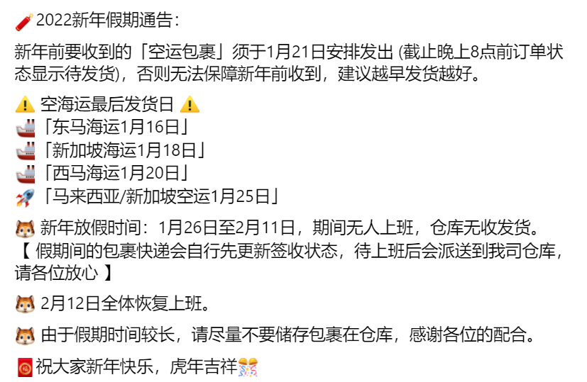 2022新年假期通告